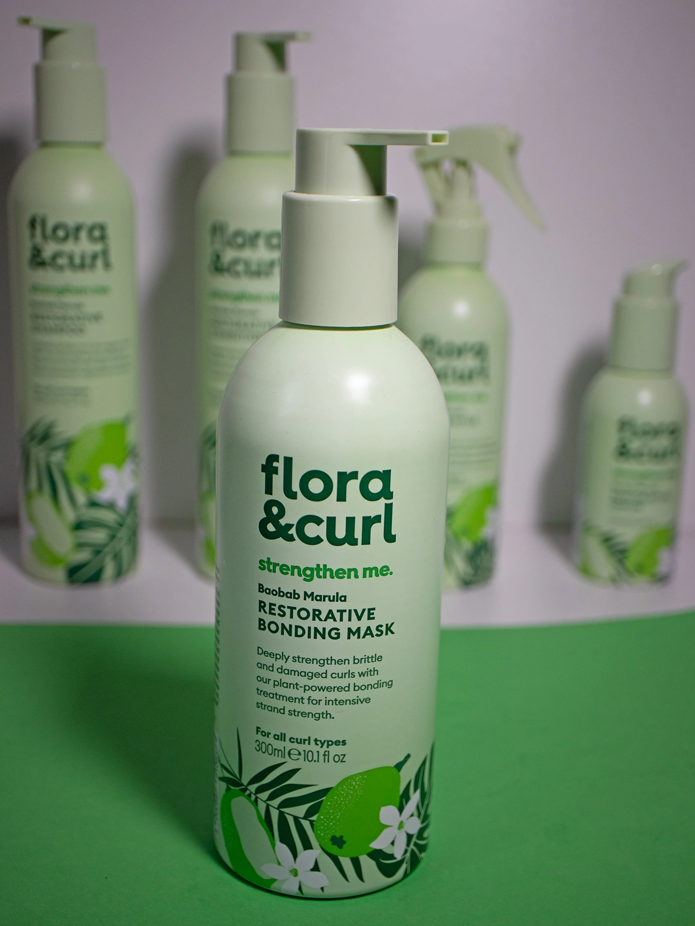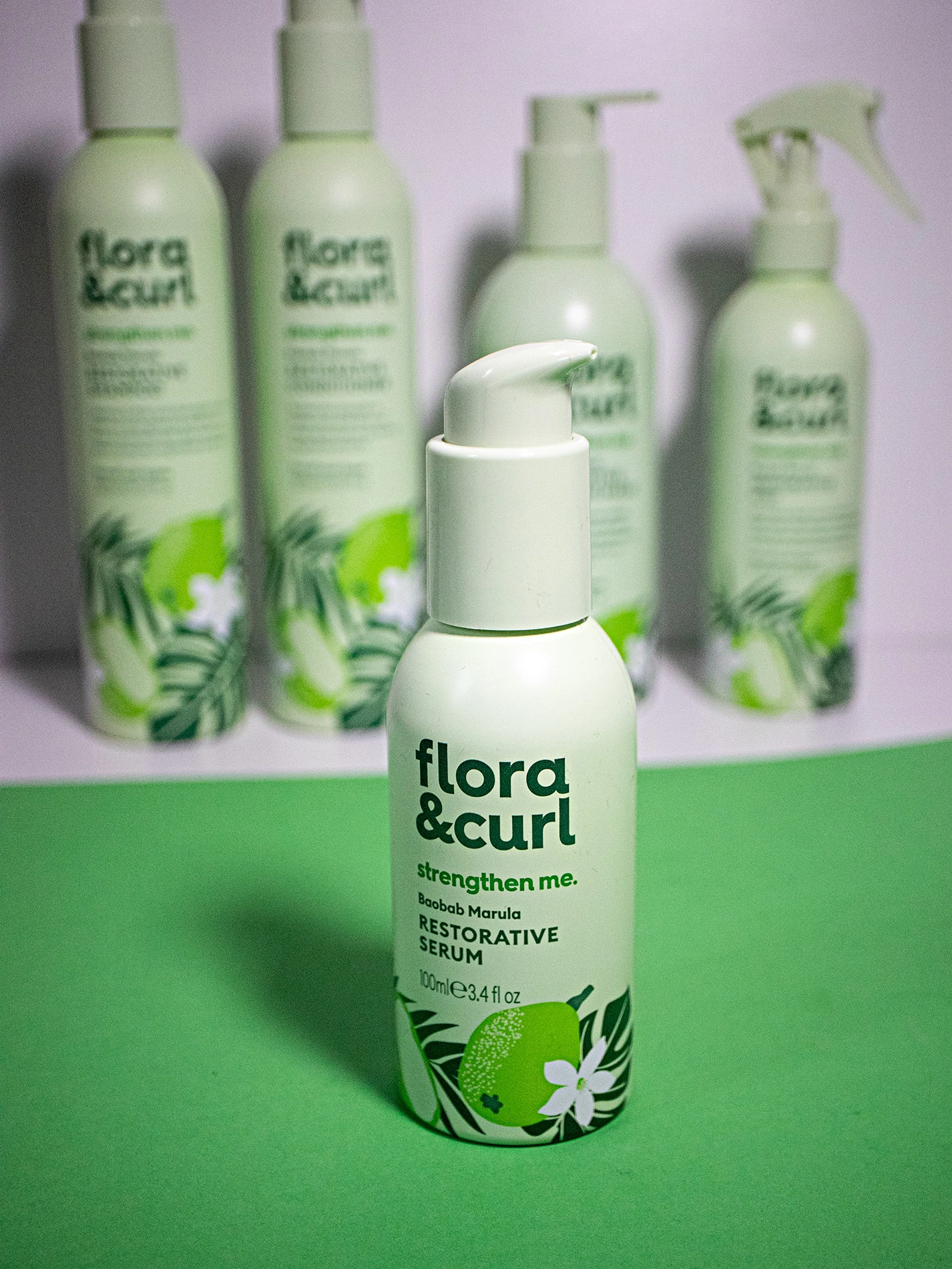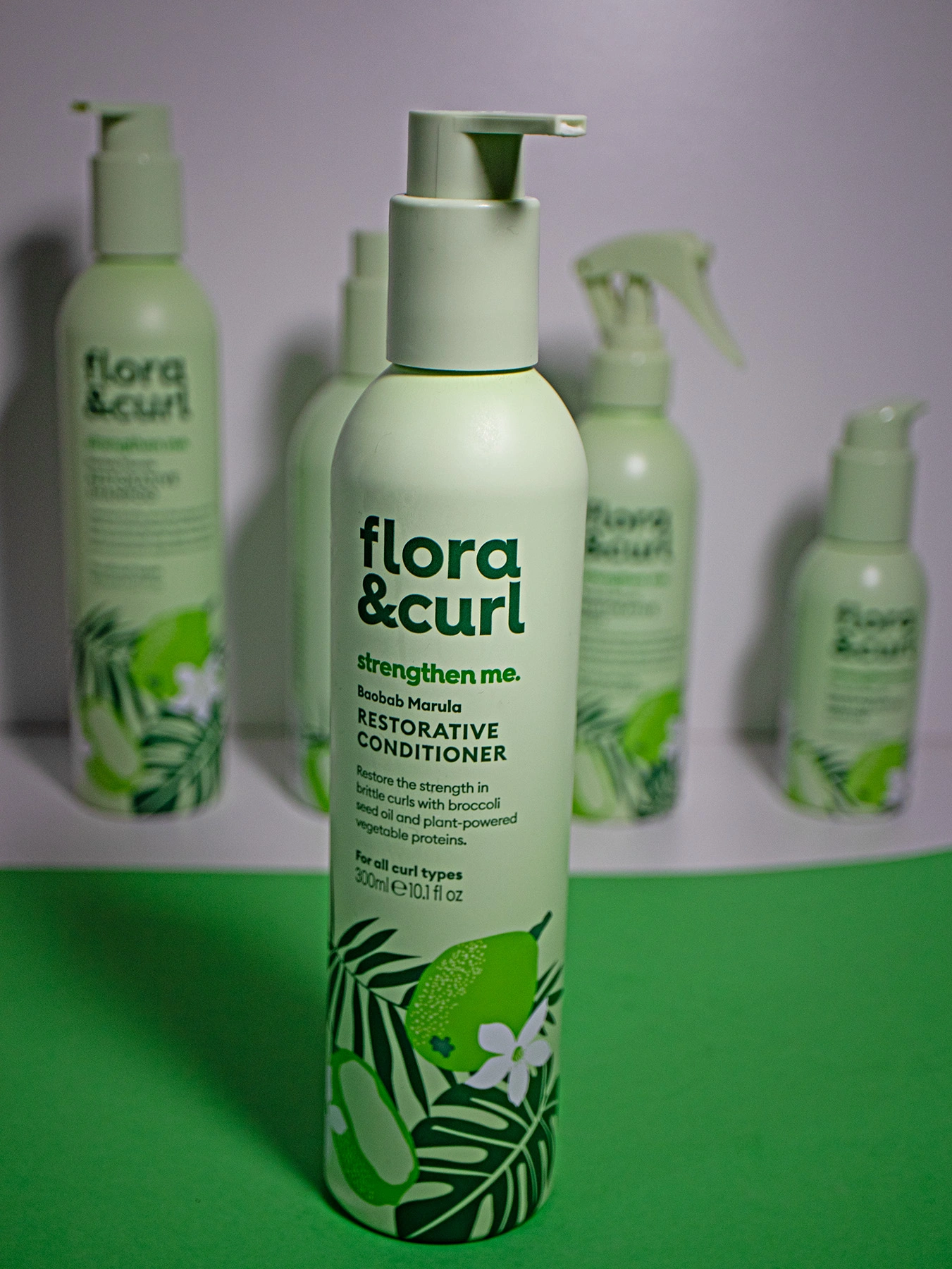 This range, like all of Flora and Curl, is all about plant power to support your hair. It includes: